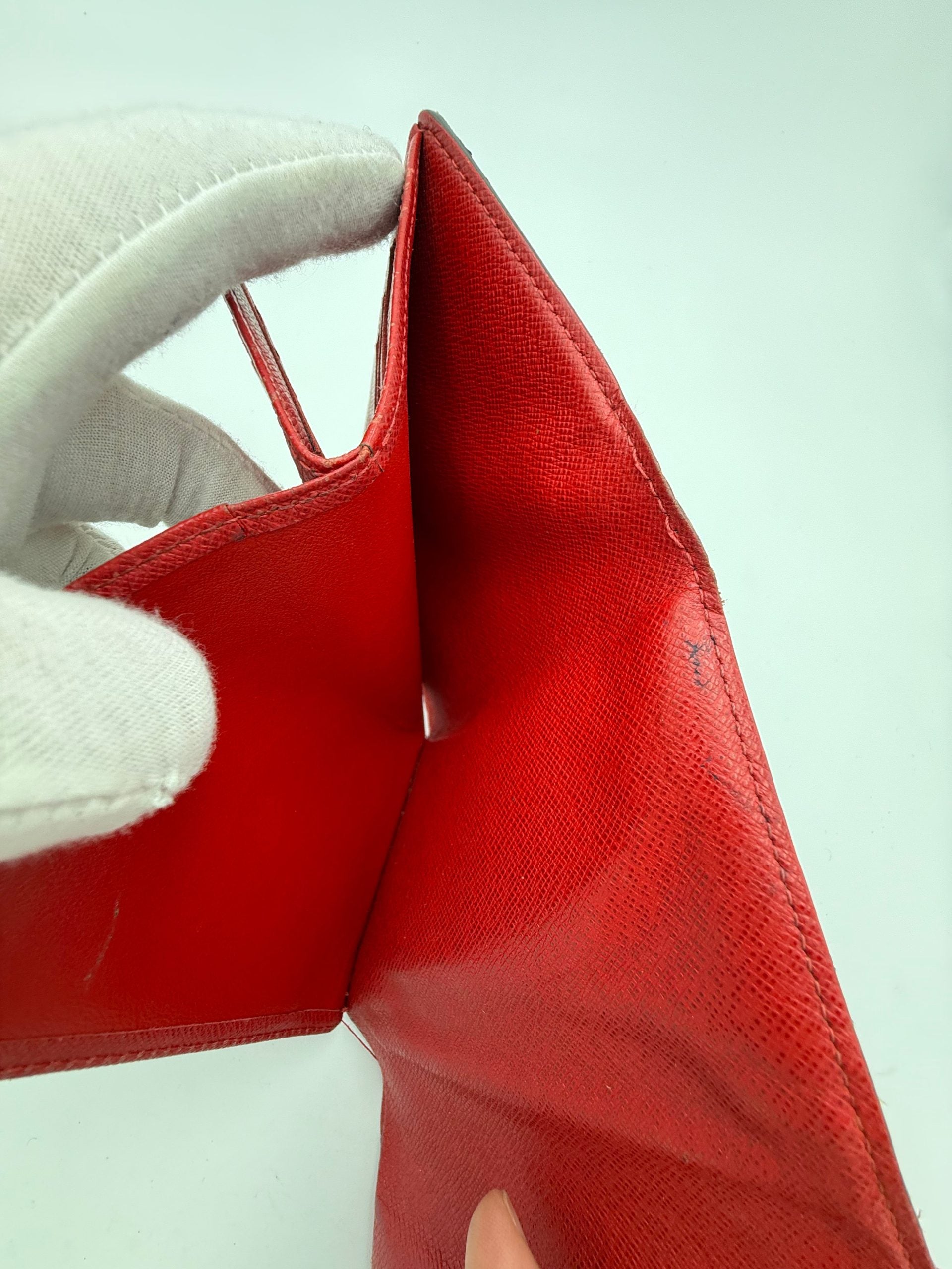 Louis Vuitton wallet with secure Push-Lock closure, in Damier Ebene version. Interiors in red. A compact luxury wallet that is durable and spacious with which you will not go unnoticed.