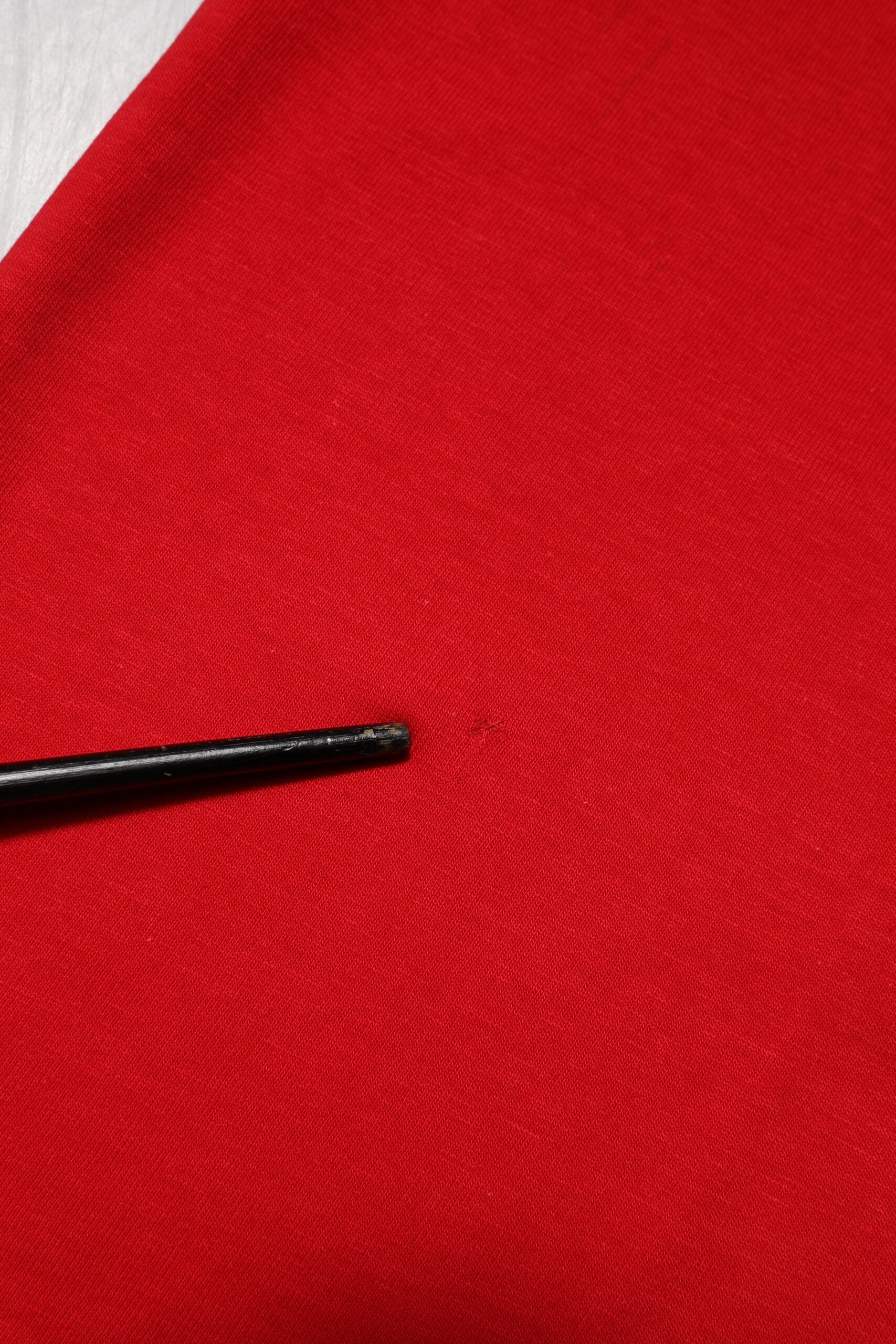 This item has a minor defect, there are pulled threads and stains on the front side (see pictures for details).