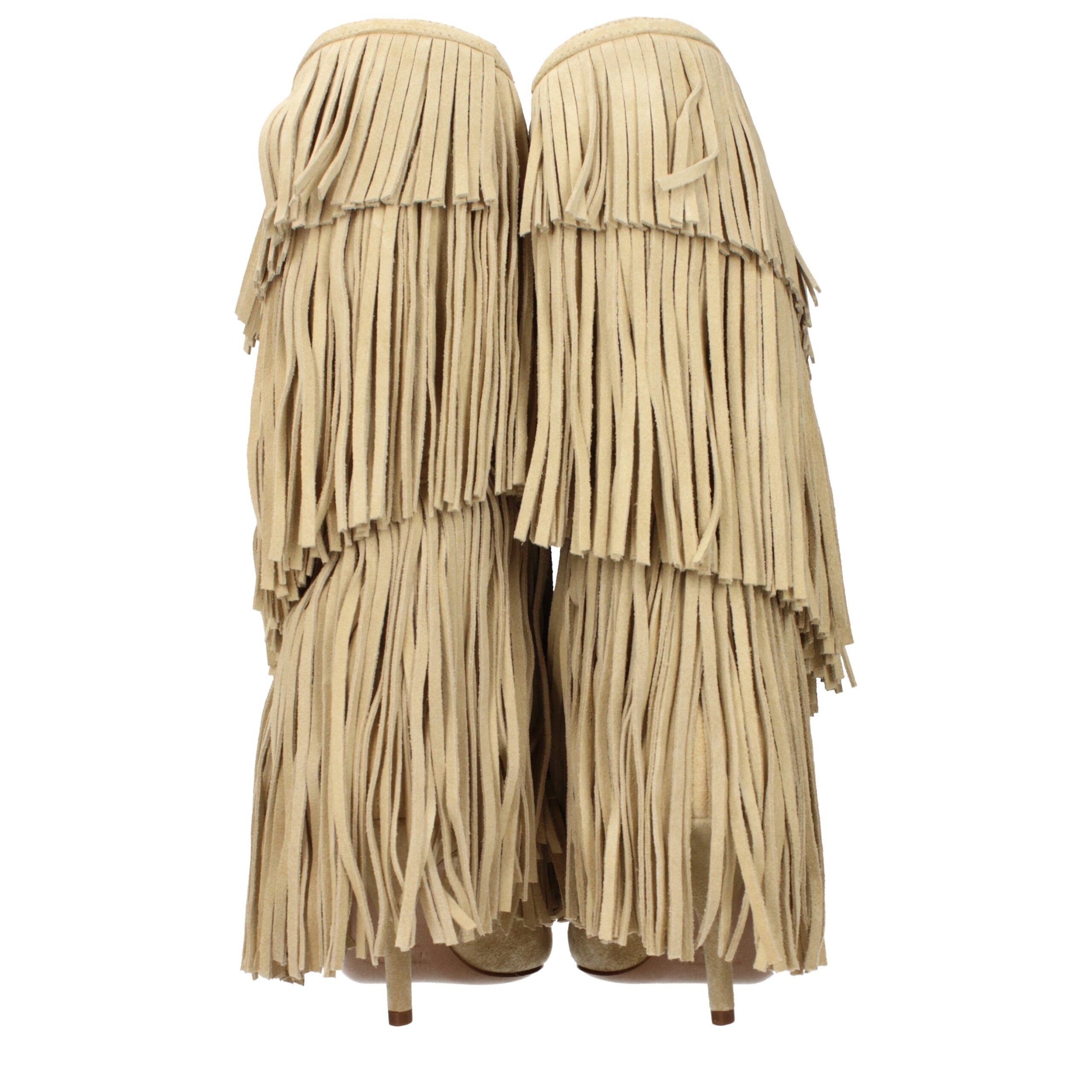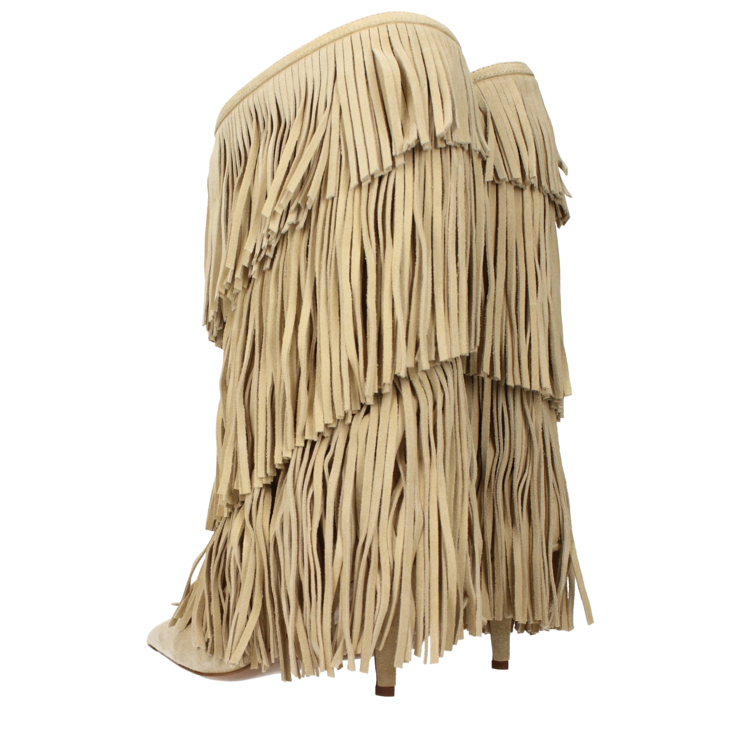 The product with MPN PX1531XV0SSECRU and code F84694 suede in beige is a boots designed by Paris Texas. It has features like fringes.